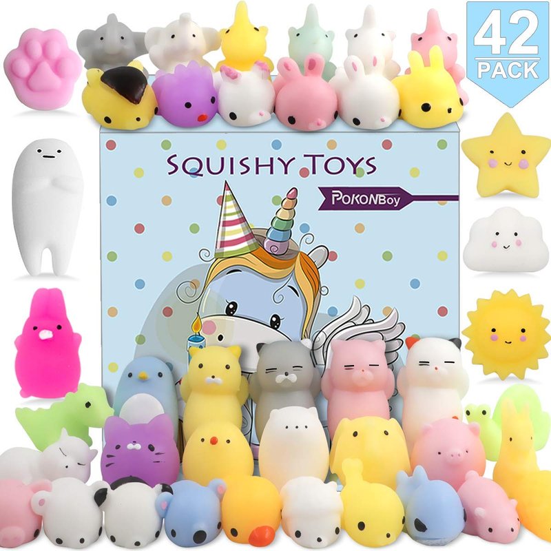 POKONBOY 42 Pcs Mochi Squishies Mini Squishy Toys, Kawaii Animal Squishies Stress Relief Toys for Boys & Girls Birthday Gifts Easter Event Classroom Prize Goodie Bag