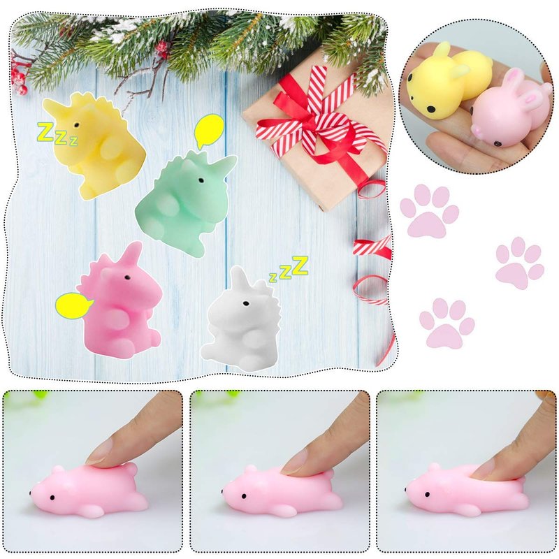 - 🦄️【Material】: These mochi squishies are made of safe and non-toxic soft TPR material with super good touching feeling. These mochi squishy toys can be rinsed with water directly when they are dirty. Just need to use some soap, they will become new again.
