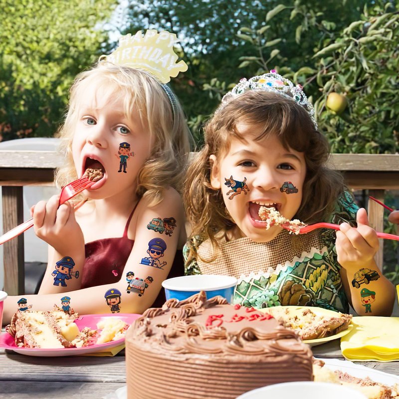 - 🚔POLICE PARTY DECORATIONS: POLICE tattoo stickers are suitable for POLICE party decorations for kids who love police,specially for POLICE themed birthday party, show themed party, graduation party, kids play party, POLICE retirement party.It is the darling of the POLICE car theme birthday party and is loved by POLICE decorations party.