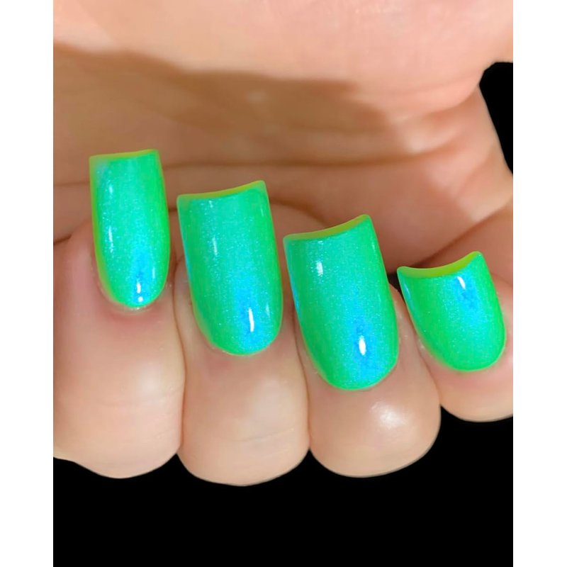 Polish Me Silly Slimey Glow - Neon Green Blue NEON Glow Pop Collection Multi Color Shifting: Mylar Oil Slick Indie Nail Polish