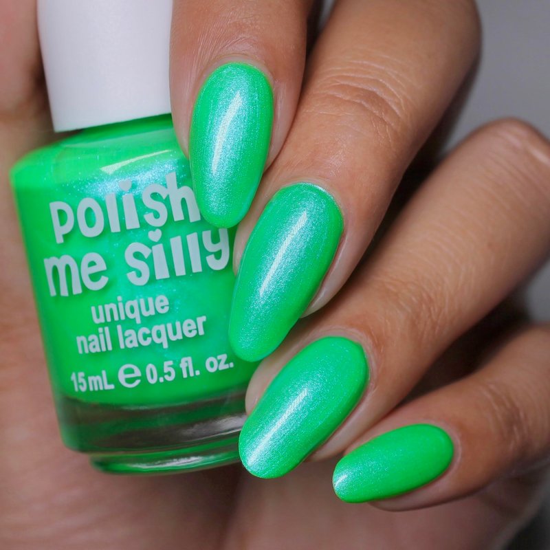 - Unique Crazy green: Whether you’re a fan of those stunning, intense nail colors that add originality to your summer days, or you simply want your clients to enjoy beautiful color choices every time they step into your salon, the Polish Me Silly Slimey Glow no chip nail polish is the perfect choice!