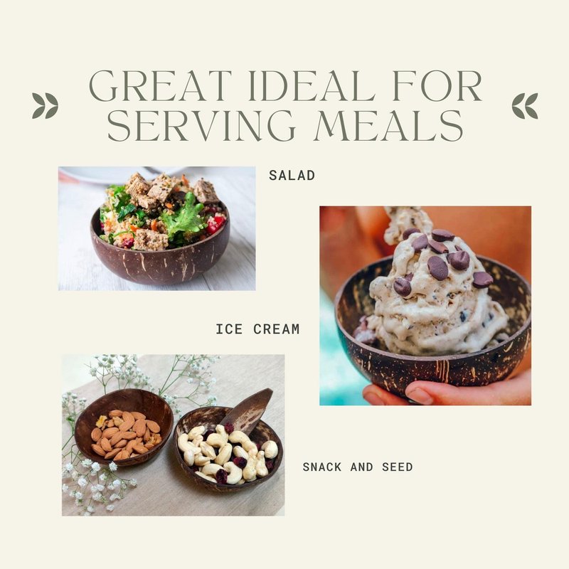 The coconut bowls are idealized for smoothie and serving of mixed greens, everything will look and taste way better.