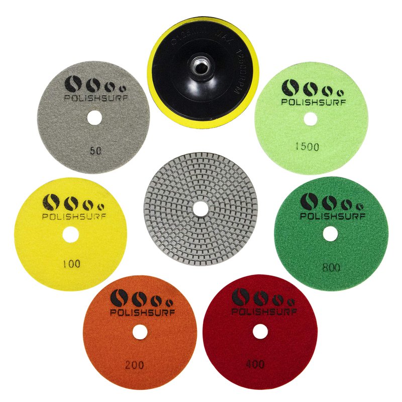 POLISHSURF brings the most complete 5 Inch Granite Buffing Pads Set for Practical Polishing Projects.