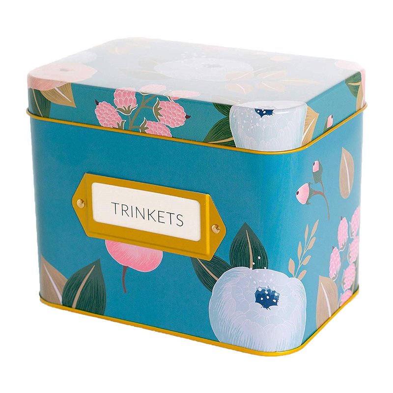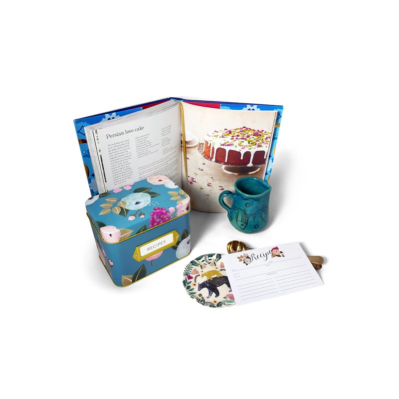 - SKY BLUE RECIPE TIN - Our vibrant blue recipe box is an elegant and functional addition to add to your kitchen. Recipe tin is designed in a bright blue with colorful flowers and a gold finish. Each recipe card is dual-sided and designed with a playful floral icon