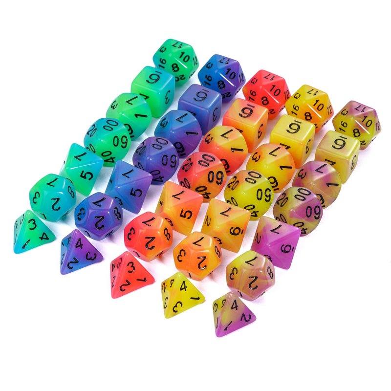 - ☼Glow-in-the-Dark Dice☆ These dice feature vibrant and captivating colors that come to life when they glow in the dark after absorbing strong light or flashlight. Which not only enhance gameplay but also serve as a visual spectacle, making them a true centerpiece for any dice collection.