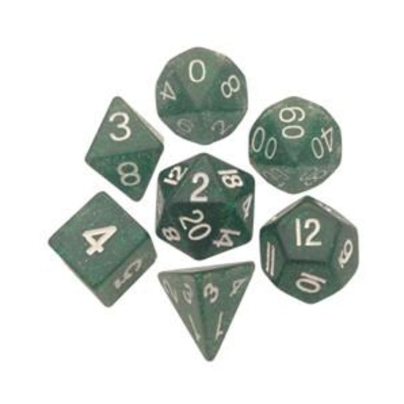 - Colored ethereal green with white numbers. Contains 7 assorted resin dice.