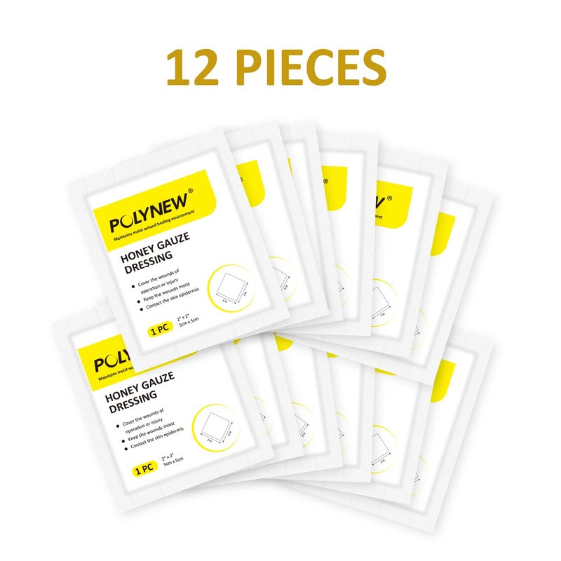 - [Size and independent packaging] The size of honey gauze is 2"x2", 12 pieces in each box, and each piece is packaged independently to prevent pollution from the external environment.