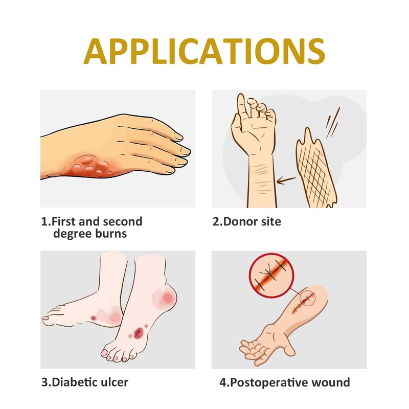 - [Ideal for] It is suitable for external wounds without exudation to help them keep the moist of the wound,such as burns, ulcers, pressure sores, superficial abrasions.