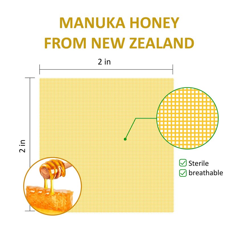 - [UPGRADED VERSION HONEY WOUND CARE] Manuka honey gauze dressing is a gauze soaked with manuka honey from New Zealand, which can effectively prevent wound infection, keep the wound in a moist environment and accelerate the speed of wound healing.