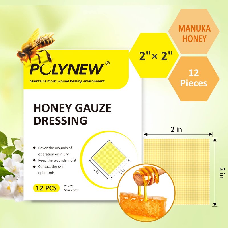 - Size: Manuka Honey Gauze 2"x2"-12 Pack/Box