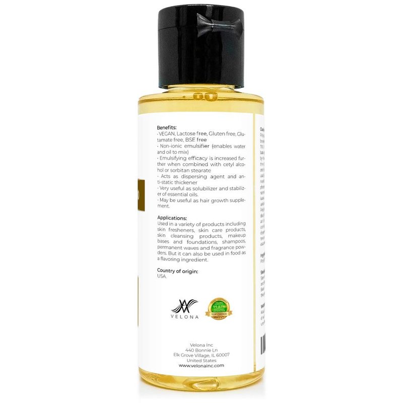 Polysorbate 20 by Velona - 2 oz | Solubilizer, Food & Cosmetic Grade | All Natural for Cooking, Skin Care and Bath Bombs | Use Today - Enjoy Results