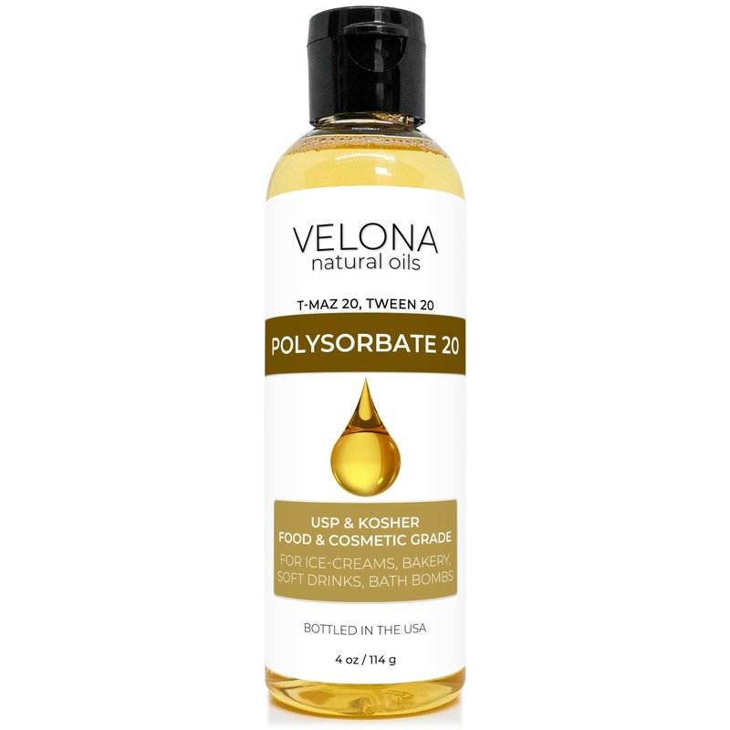 Polysorbate 20 by Velona - 4 oz | Solubilizer, Food & Cosmetic Grade | All Natural for Cooking, Skin Care and Bath Bombs