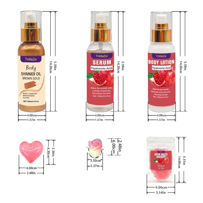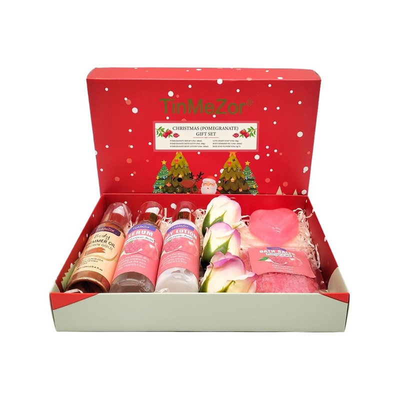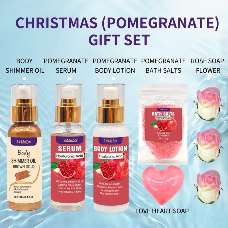 Pomegranate Skin Care Set,Skincare Gift Set With Body Shimmer Oil,Serum,Body Lotion,Sea Salt,Soap Flower- Christmas Set For Women,Bath Gift Set for Women,Bath And Body Gift Set