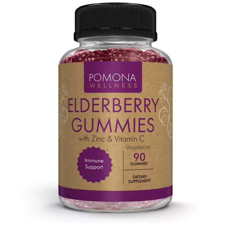 Pomona Wellness Elderberry Gummies with Zinc and Vitamin C for Immune Support 3-1 Chewable Black Elderberry Gummy Supplement for Kids and Adults, Vegan, 90 Gummies