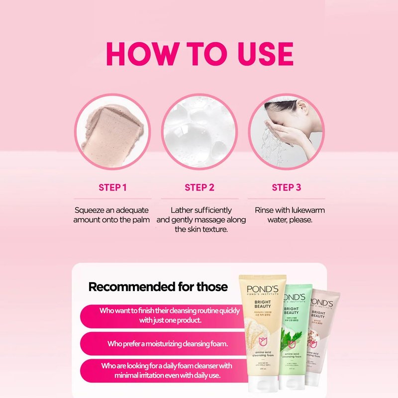 Pond's Bright Beauty Foam Cleanser (Rice) | Gentle Face Wash for Women | Deep Cleansing Formula | Moisturizing & Pure | 17 Amino Acid Complex