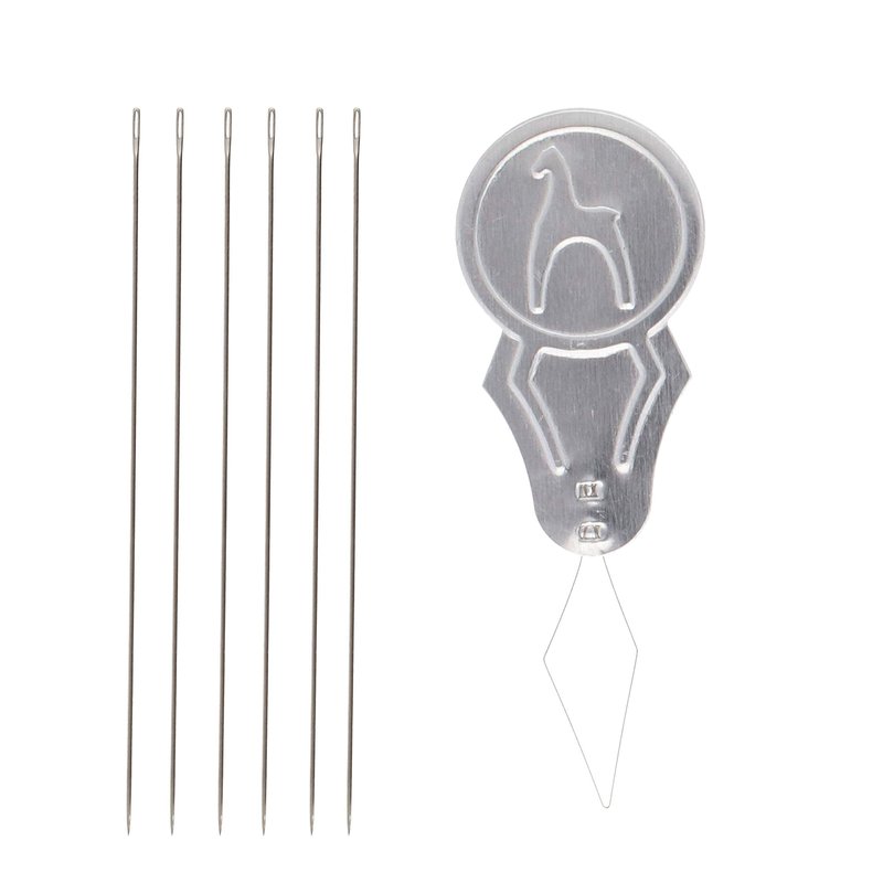 - THREADING: The stiff needle is very fine, long and straight, with long eyes made for keeping thread in place while working.