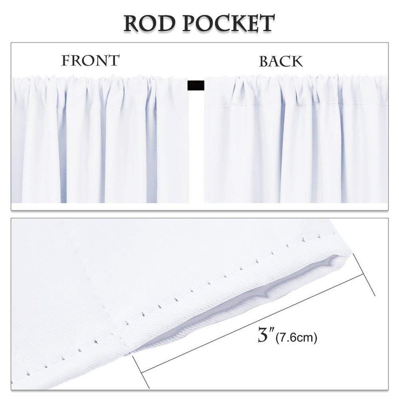 - READY MADE: Package includes 2 blackout curtain panels. 3" rod pocket top fits most standard rods. No liner, same material on both sides. Multiple colors & sizes are available.