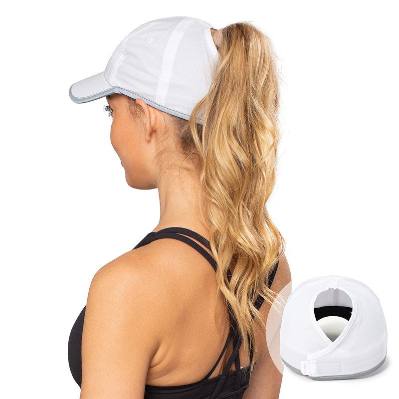 Ponyflo Performance Ponytail Running Hat - Ponytail Hats for Women - High Ponytail Hats for Women - Baseball Cap Women White
