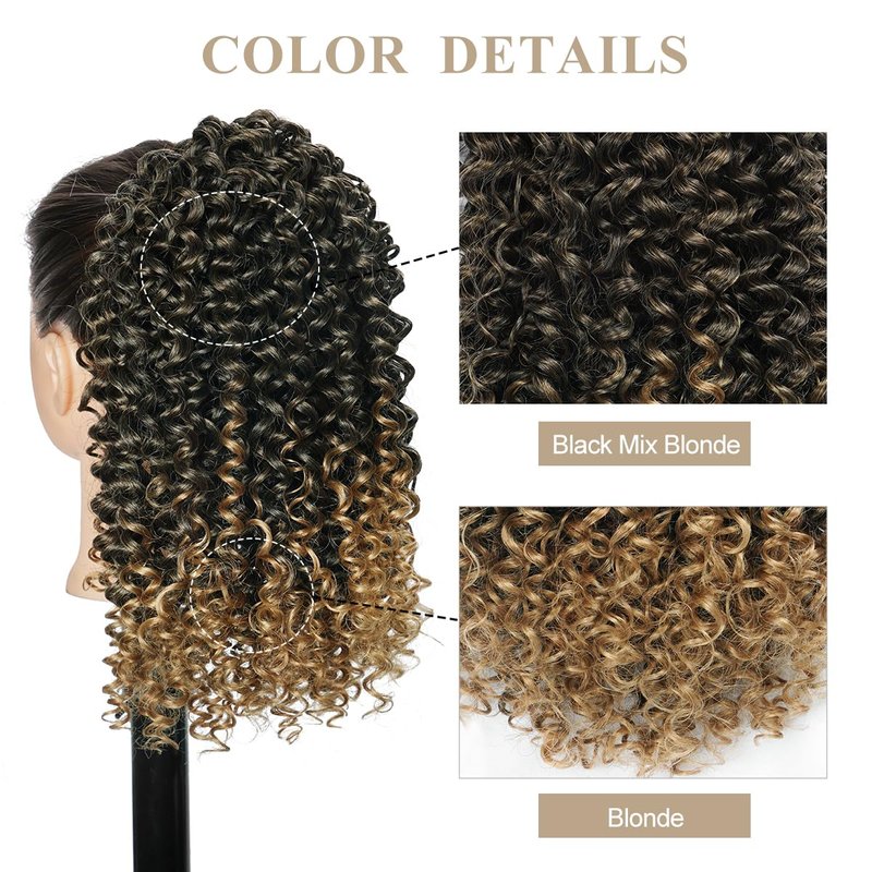 Ponytail Extension Drawstring Ponytail for Black Women 14 Inch Blonde Curly Drawstring Ponytail Extensions Synthetic with 2 Clips on Ponytail Hair Extensions (1B/27#)