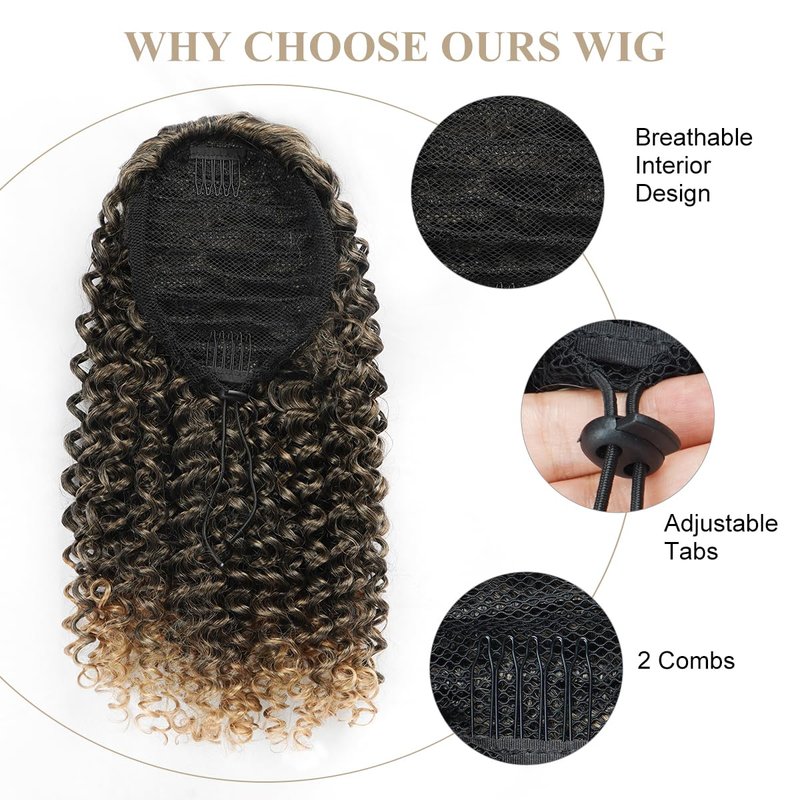 Curly Ponytail Extension Drawstring Ponytails for Black Women Synthetic Curly Drawstring Ponytail with 2 Clips on Ponytails for Women