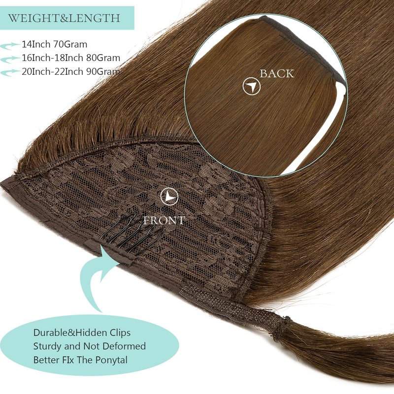 - [Pony Tails Hair Extensions Length & Weight]: Offer 14/16/18/20/22 inch ponytail hair extensions in any colour to perfectly match with your hair. 14’’-70g, 16’’-80g, 18’’-80g, 20’’-90g, 22’’-90g. We can customize your size for you!