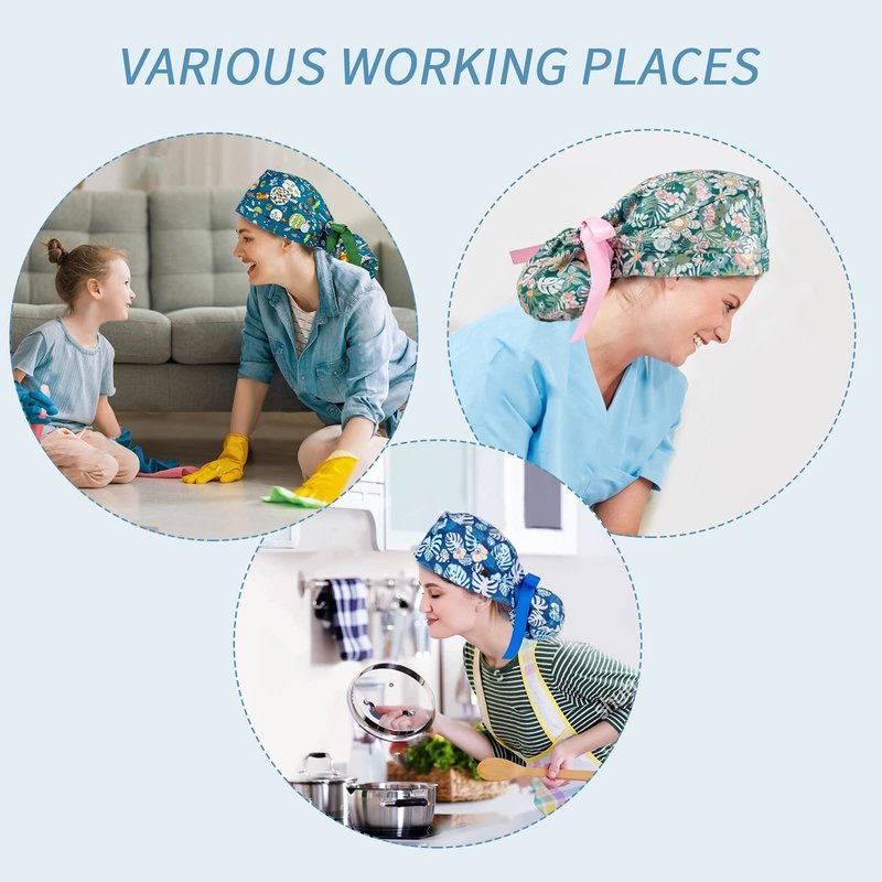 - UNIVERSAL FITS: Our working hat is with adjustable ribbon, one size fits most people's head without tightness, suitable for long thick hair and ponytail, maintain your hairstyle during working and keep your head clean and neat