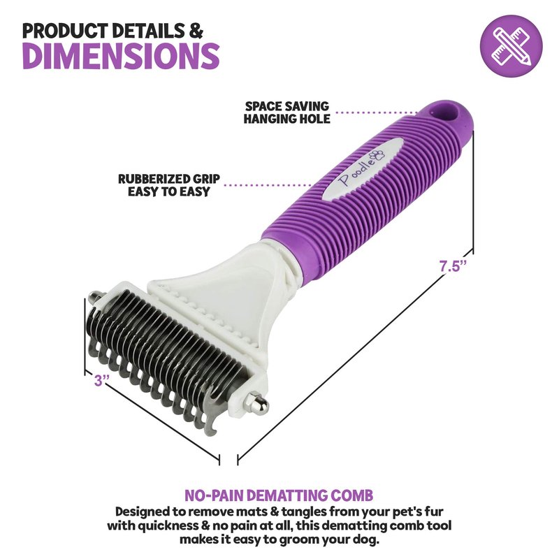Reveal the best of your dog's coat with a dematting comb pet grooming tool. Click 'ADD TO CART' to order your Poodle Pet dematter!