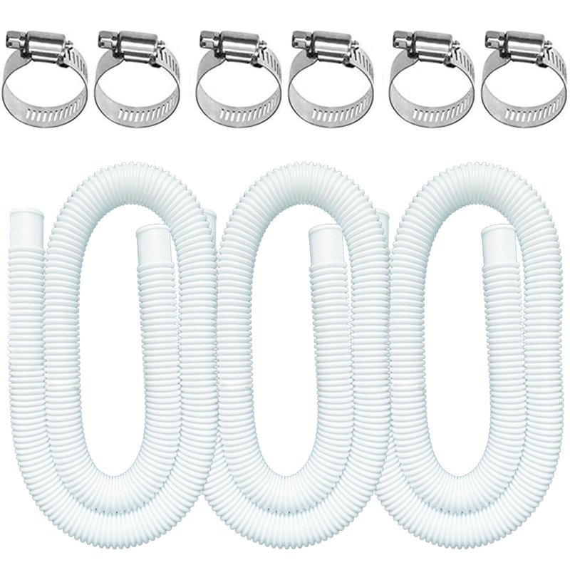 Pool Hoses for Above Ground Pools, 3 Pack 1.25" Diameter Accessory Pool Pump Replacement Hose 59" Long - Filter Pump Hose Compatible with Intex Pump Model 607, 637 Bundled With 6 Metal Clamps (3)