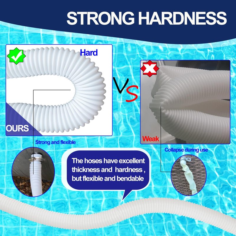 - HIGH QUALITY MATERIAL: The pool filter hose is made of high quality polyethylene plastic, which is leak-proof, corrosion resistance, wear resistance, UV resistant, durable.