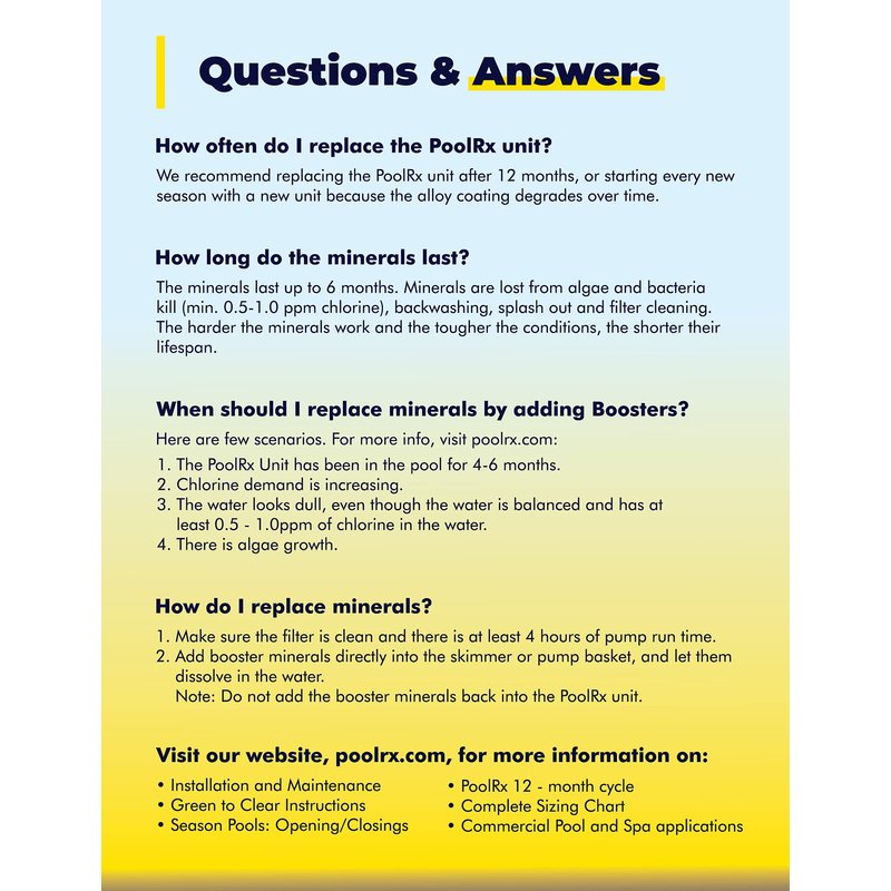 - Additional minerals for Pool Rx pool unit