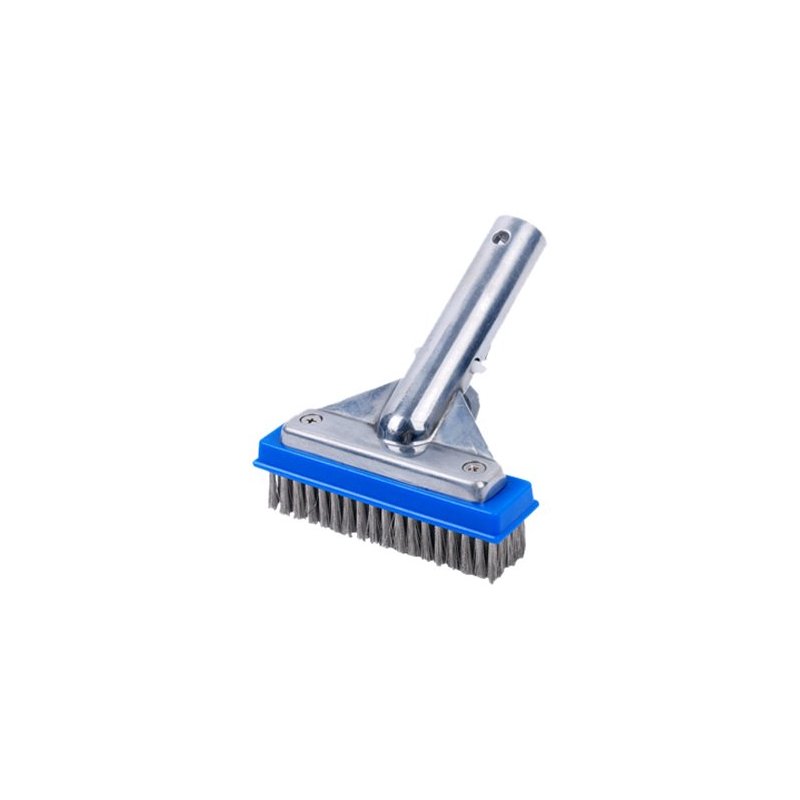 Pooline 5" Pool Brush with 5" Aluminum Back and Handle- Stainless Steel Bristles - Blue Brush Body