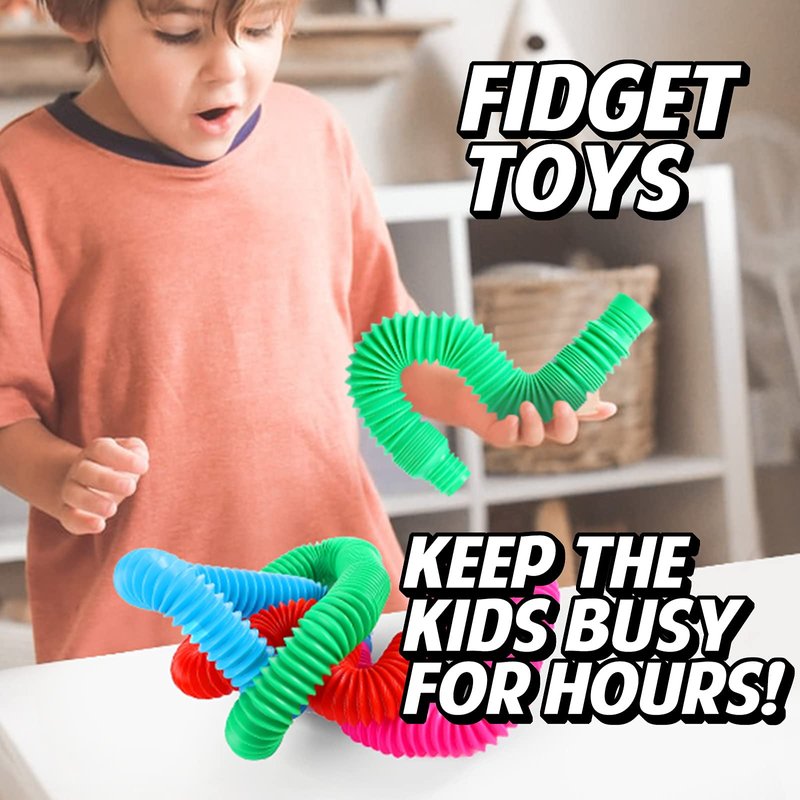 - Fun Fidget Tubes: These tube toys can be pulled, stretched and create different shapes. They create a popping sound when compressed, can let your children have hours of fun.