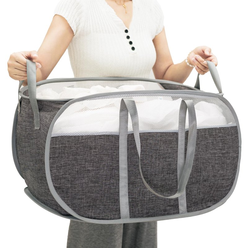 Pop-Up Laundry Basket,collapsible Mesh Laundry Hamper– With Extended Shoulder Straps, Sturdy Handles, and Premium Cationic Fabric (gray)