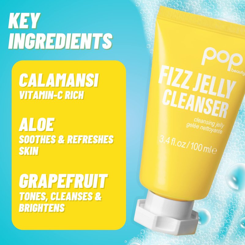 POPBEAUTY Fizz Jelly Cleanser | Textured Jelly Face Wash | Cleanses and Brightens Skin | Removes Makeup Residue | 3.4 Fl Oz