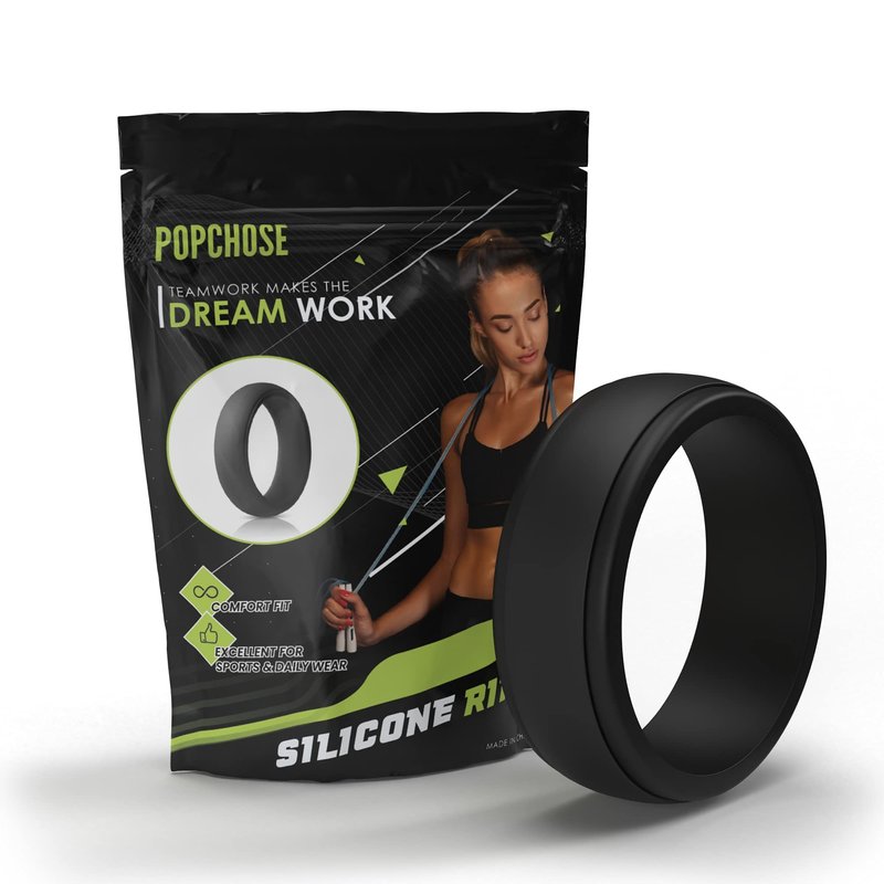 - TOP GRADE SILICONE: Medical grade, hypoallergenic, non-toxic and odorless. Our POPCHOSE signature silicone wedding ring is ergonomically designed to to fit comfortably on your fingers while allowing your skin to breath and stretch freely.