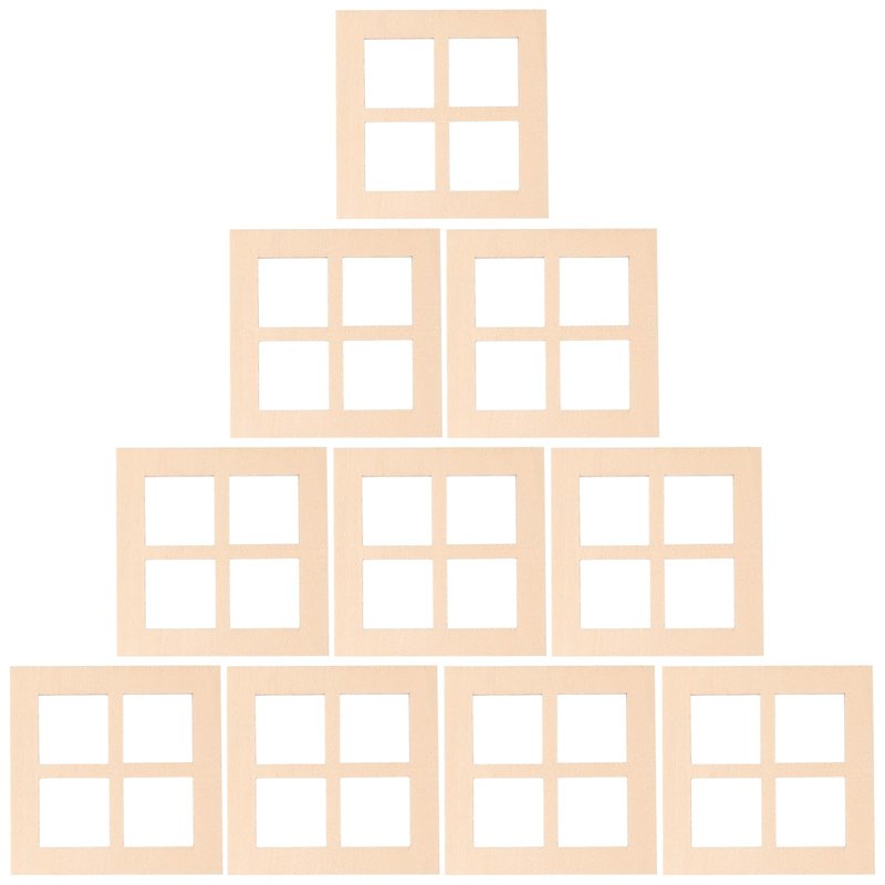 POPETPOP 10 Pcs Dollhouse Wooden Window, Miniature Wooden Window Frames Ornament for Dollhouse, Furniture Tiny Wooden Window Models for Doll Houses Decoration
