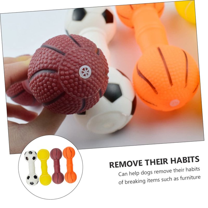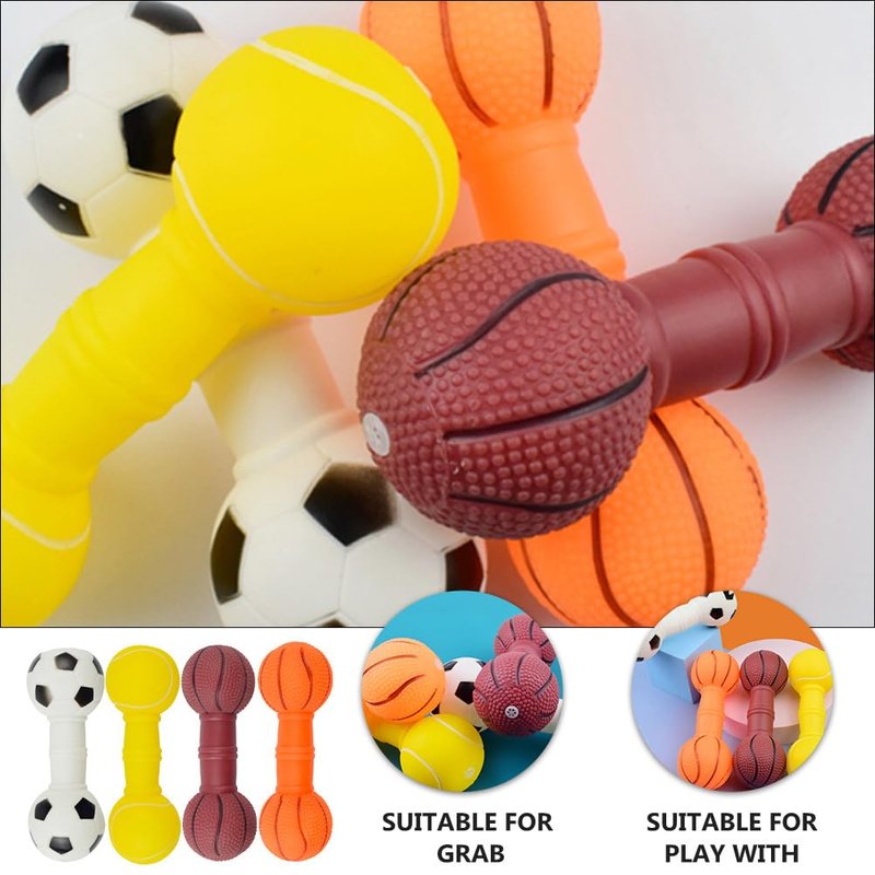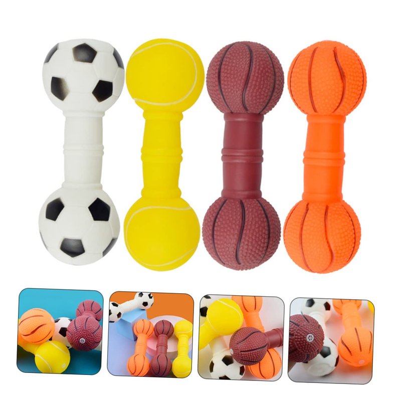 POPETPOP 4Pcs Dog Molar Chew Toys, Dog Squeaky Barbell Toys, Vinyl Dumbbell Dog Toy for Teething Playthings, Pet Squeaky Toys for Puppy