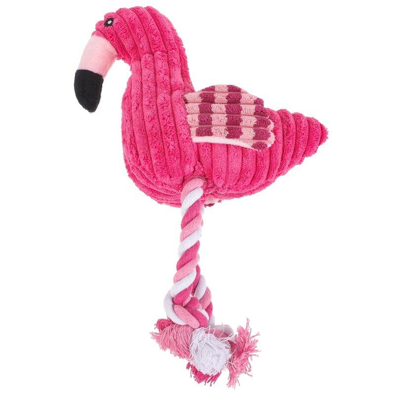 - and cuddly on the outside but durable and strong flamingo dog chew toy.