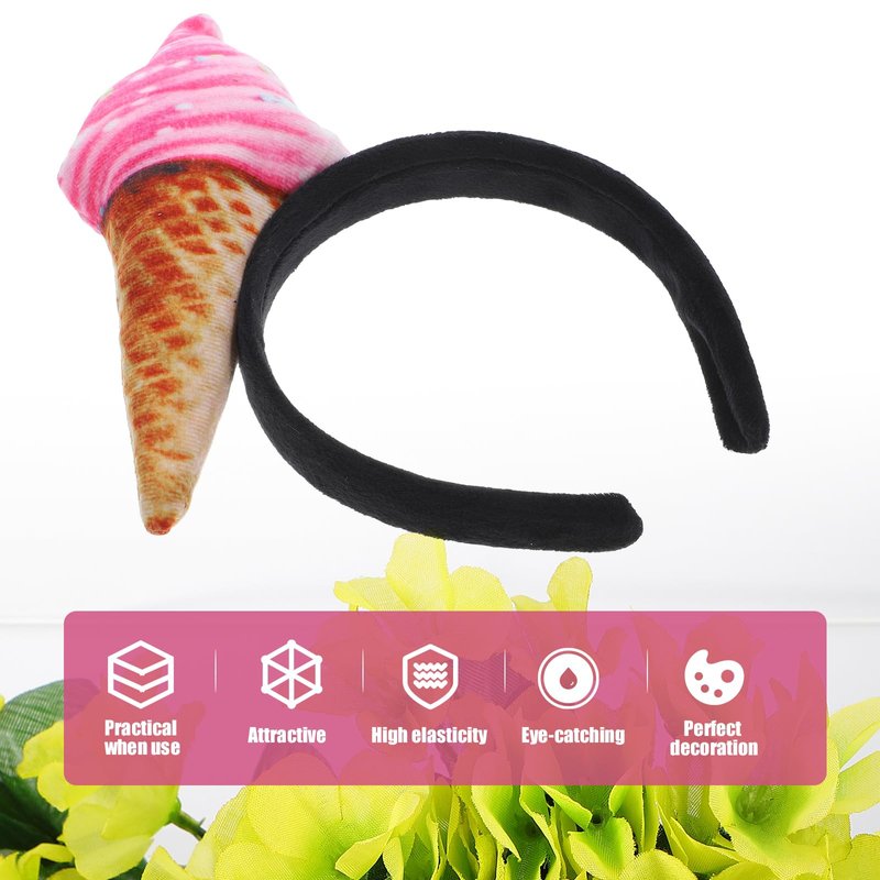 POPETPOP Ice Cream Headband Dress Up Ice Cream Cone Headband Ice Cream Party Hat Costume Party Accessory Headband Novelty Headwear Dessert Headpiece Food Cosplay
