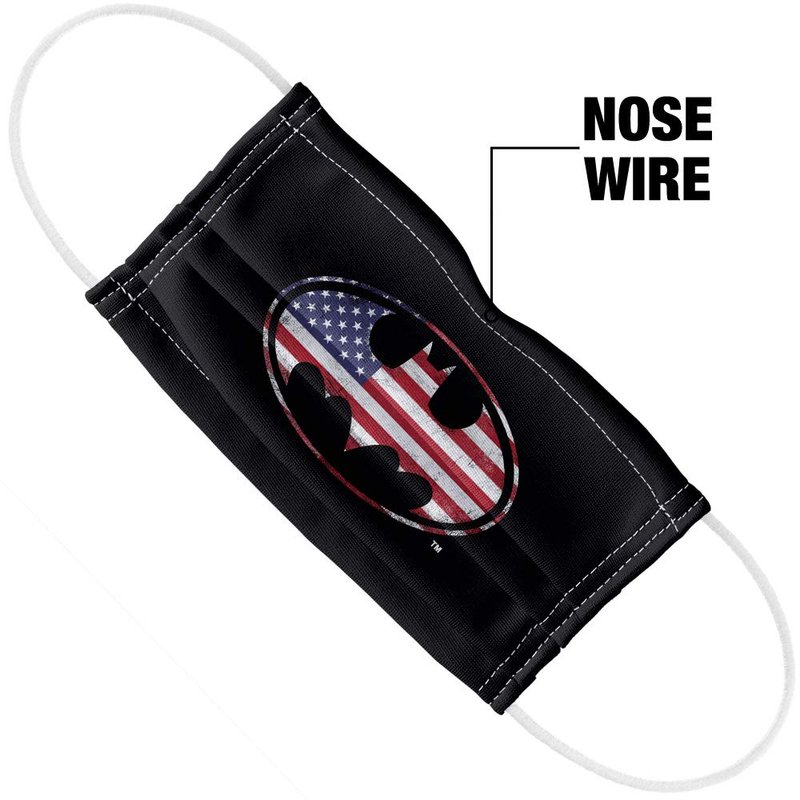 Batman American Flag Bat Logo 1-Ply Reusable Face Mask Covering with Adjustable Nose Wire, Unisex