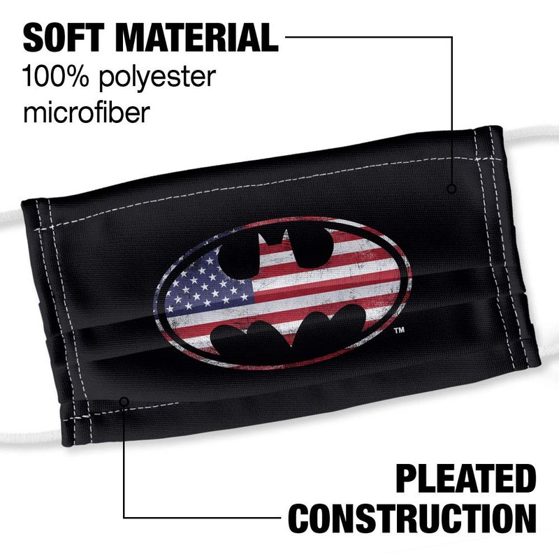 - BATMAN AMERICAN FLAG BAT LOGO FACE MASK - Our 100% polyester mask is made with 1 layer that is printed with your favorite design.