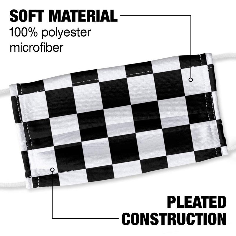 - BLACK AND WHITE CHECKERBOARD PATTERN FACE MASK - Our 100% polyester mask is made with 1 layer that is printed with your favorite design