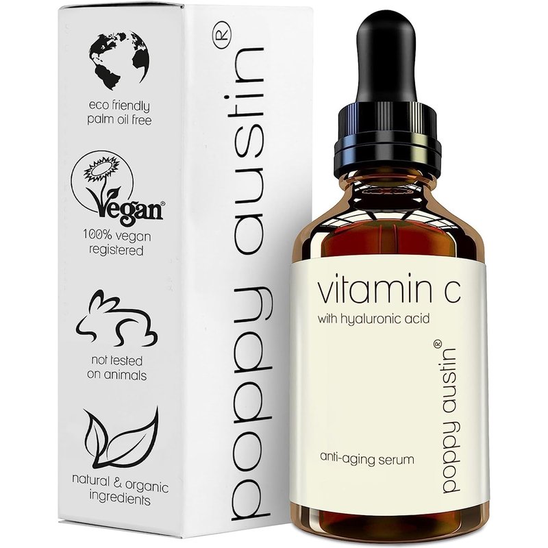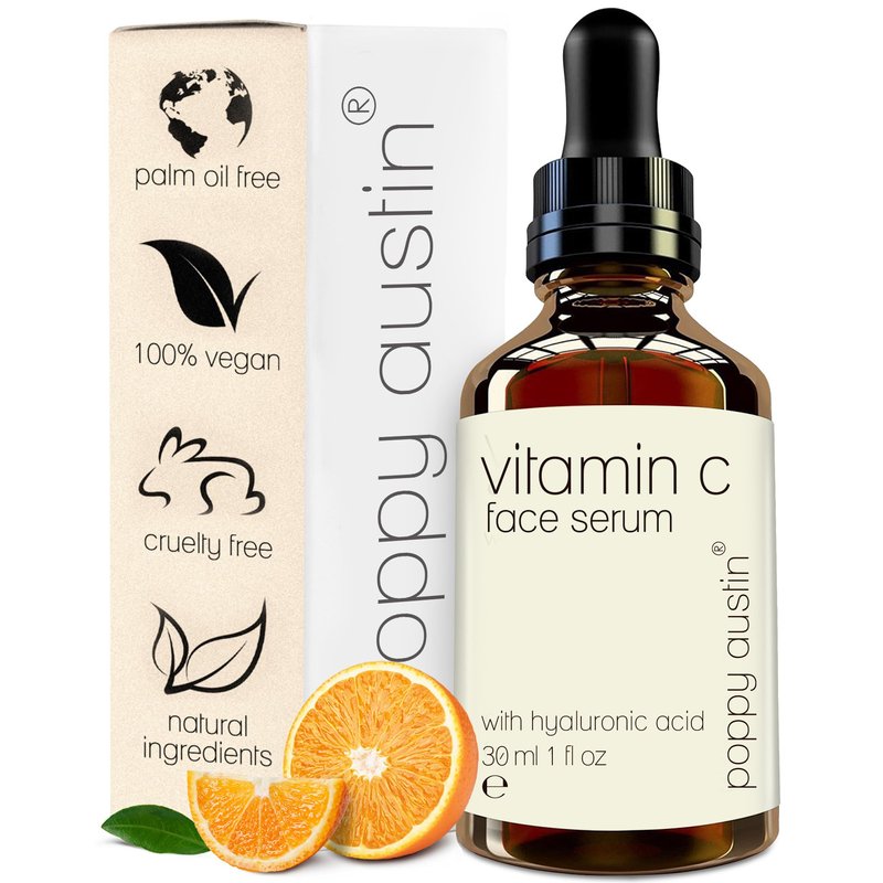 - Brightening Vegan Face Serum - Dark spots and hyperpigmentation could be challenging to deal with, especially as you age. Target them naturally with Poppy Austin's vitamin C and hyaluronic acid serum for face. Effective against skin dulling, this vitamin C face serum with hyaluronic acid helps diminish dark spots and fight free radicals, ultimately brightening your complexion while restoring the skin's natural moisture. Vitamin C smoothens the skin's surface, letting your face shine through.