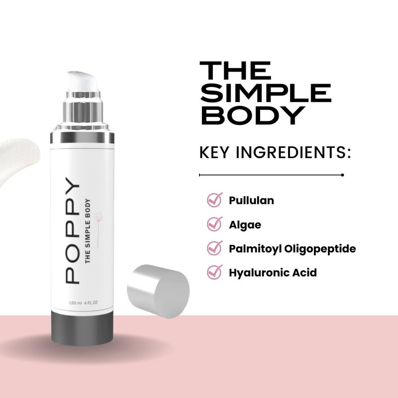 Poppy Simple Body Anti-Aging Serum - Women Hydrating Body & Neck Serum with Vitamin C, Hyaluronic Acid, & Algae Extract - Made from Anti Wrinkle That Reduces Acne & Brightens SKin - 4 Fl Oz Serum