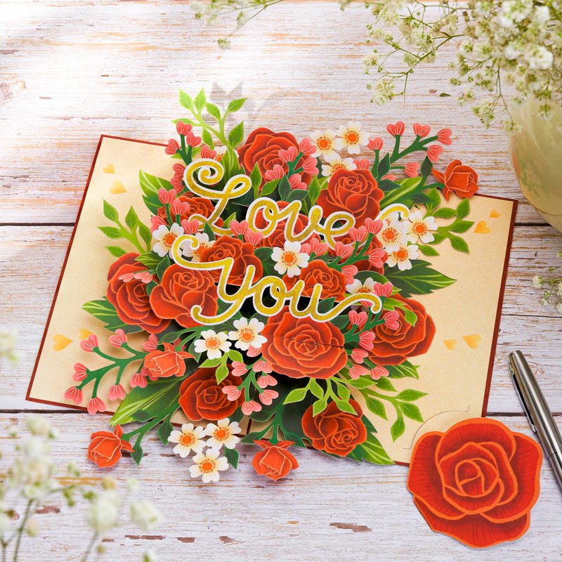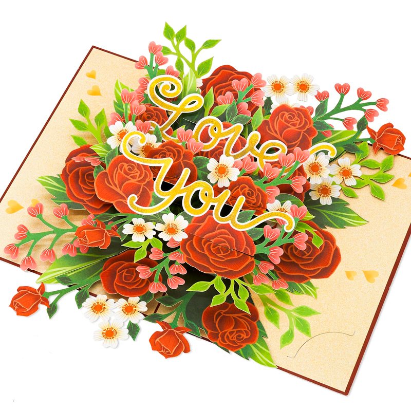 POPWOW Anniversary Pop Up Card, Floral Rose, Love You, Red Roses, Elegant 3D Greeting Cards, Ideal Gifts for Birthday, Mom, Sister, Aunt, Grandma, Daughter, Girl, Women 5x7