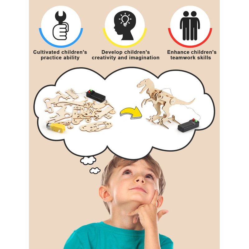 - Unique design: DIY STEM toys for ages 8-13 with wire controllers, allowing the dinosaur to move forward and backward. These wooden dinosaurs can be painted and decorated making them a unique craft kit.