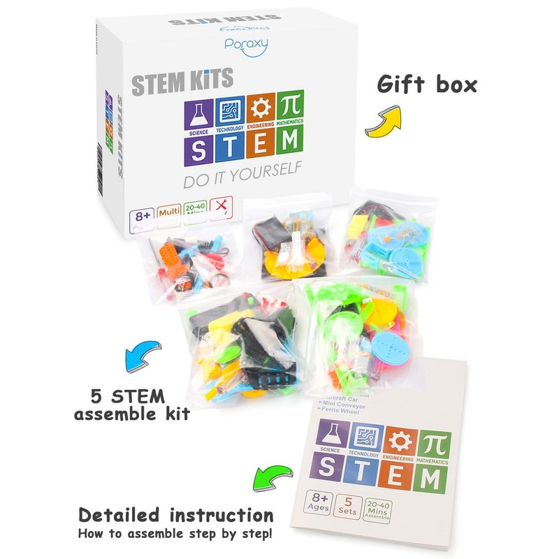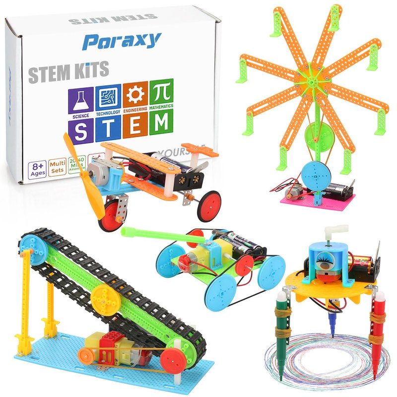Poraxy 5 Set STEM Science Kits for Kids Age 8-12, DC Motors Electronic Assembly Robotic STEM Toys for Age s 8-13, Building Experiments Projects Kits, Gifts for Boys and Girls Ages 6 7 8 9 10 11 12 13