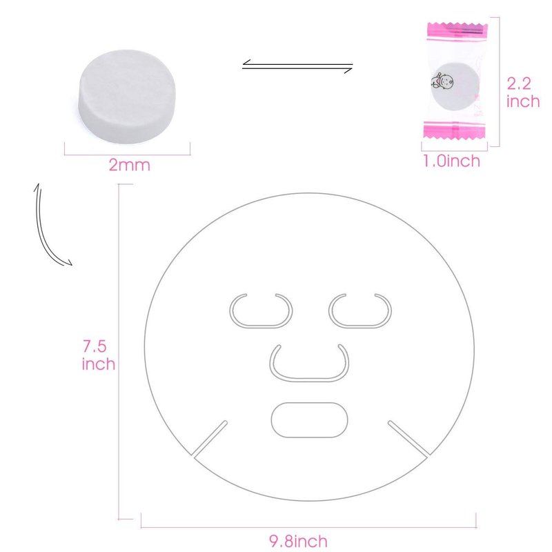 - Package Includes: 100pcs Compressed Facial Mask, 1 ×Mask Bowl, 1 × Mask Stick, 1 ×Silicone Brush, 1 × Soft Bristle Brush