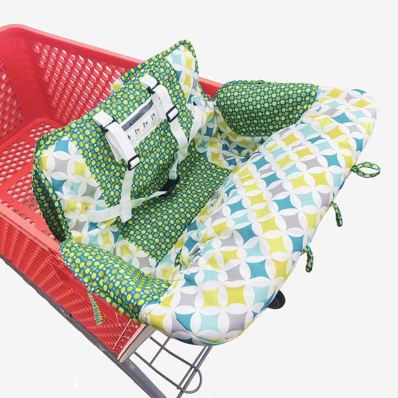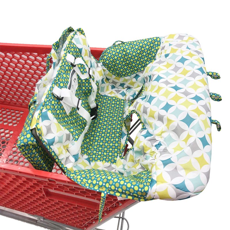 Portable 2-in-1 Shopping Cart & High Chair Cover for Baby - Green Stars Pattern