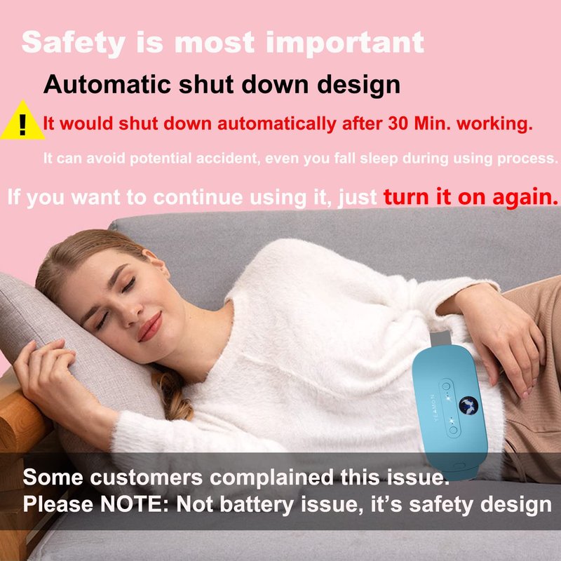 - Automatic Design: The portable heating pad is designed to automatically shut down. If you fall asleep during use, our product will automatically turn off within 30 minutes when it detects that you have not made any movement, which can ensure your safety. If you want to use it again, just turn it on again.